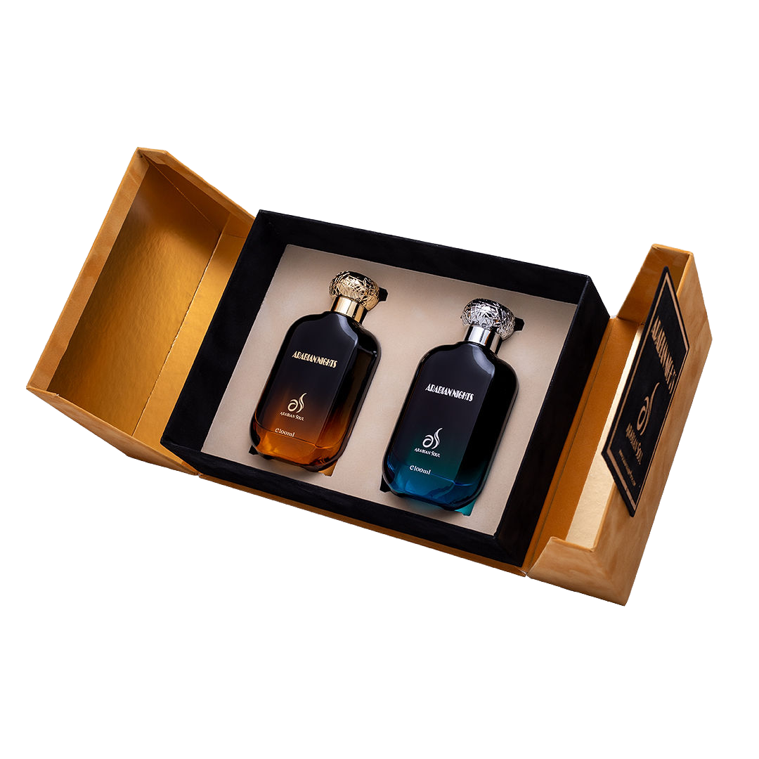 Indulge in the opulence of our exclusive perfume gift set, featuring two alluring scents that capture the essence of Arabian Nights.
